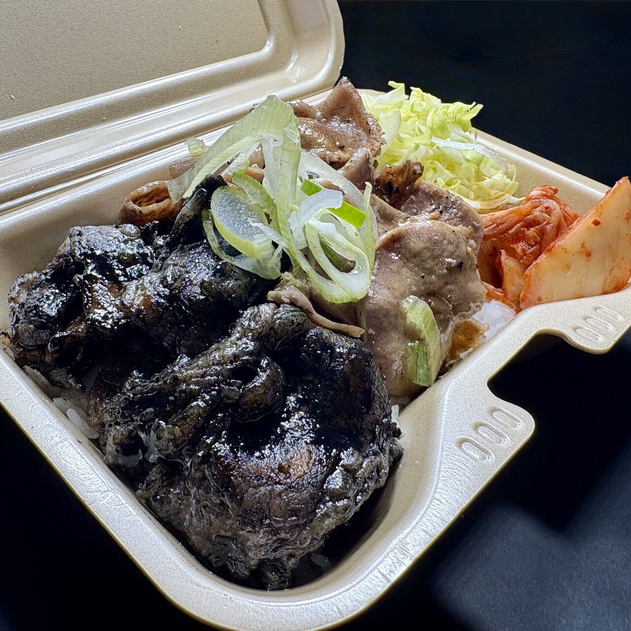 黒カルビ丼とねぎタン塩丼を合い盛りにした、スペシャル丼です。