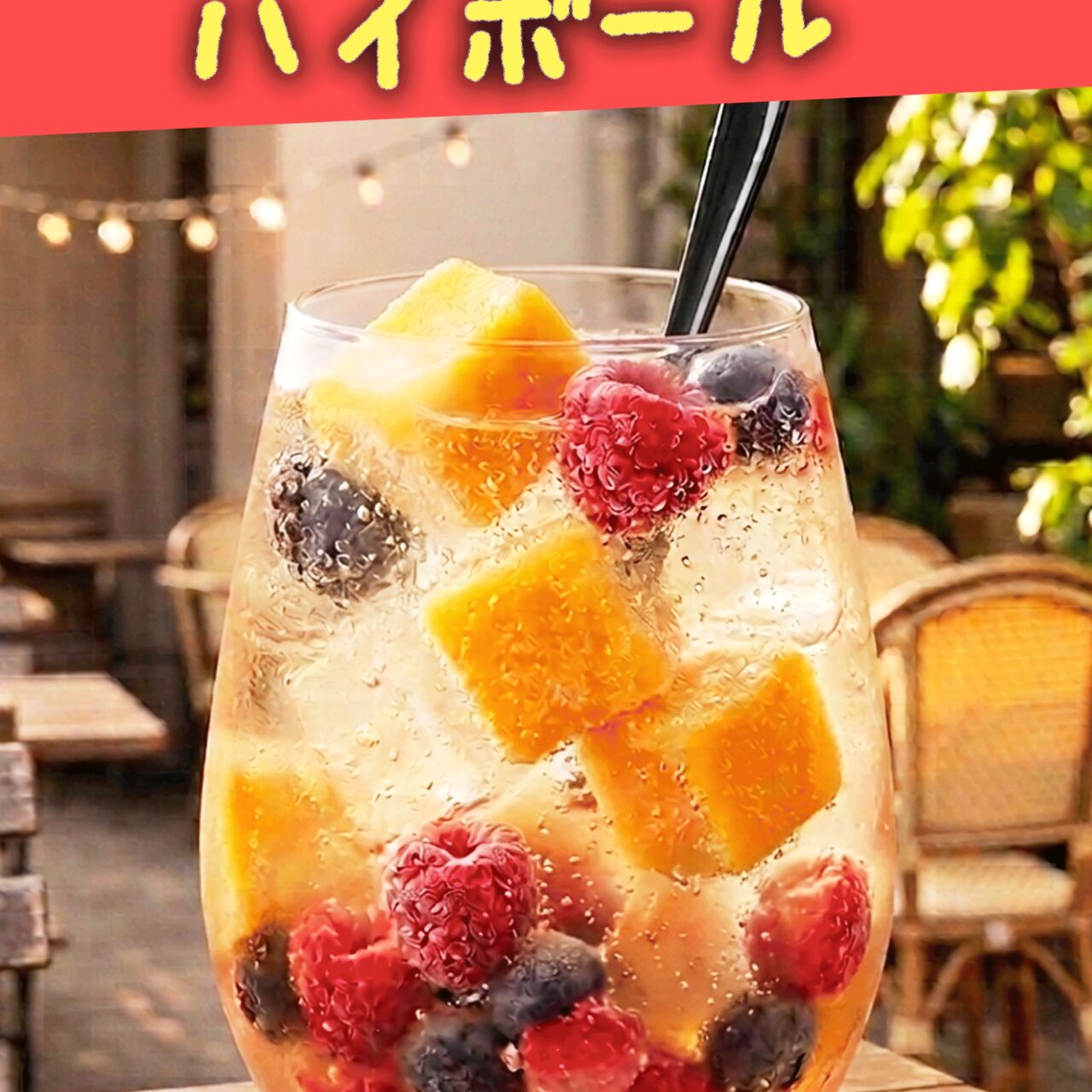ゴロゴロとフルーツが入った、見た目も鮮やかな贅沢ハイボール。イベントの開放的な気分をさらに盛り上げる大人限定のご馳走ドリンクです。