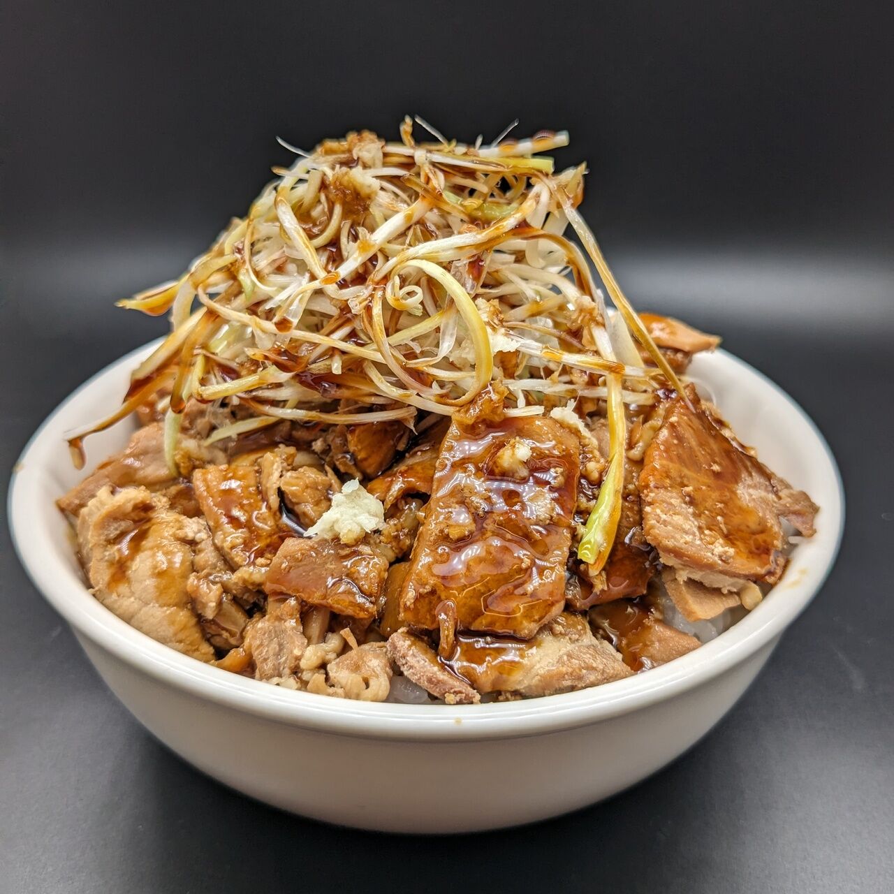 豚肉を赤ワインや醤油で煮込みすりおろし生姜をトッピングしました。
