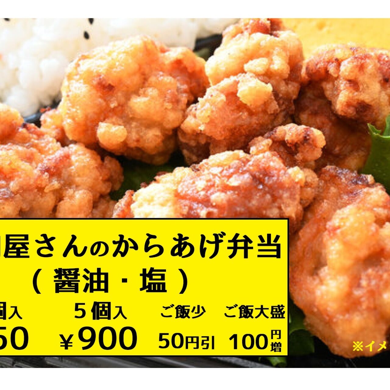 とってもジューシーなお肉屋さんの唐揚げ弁当♪醤油味、塩味ともにおすすめ!