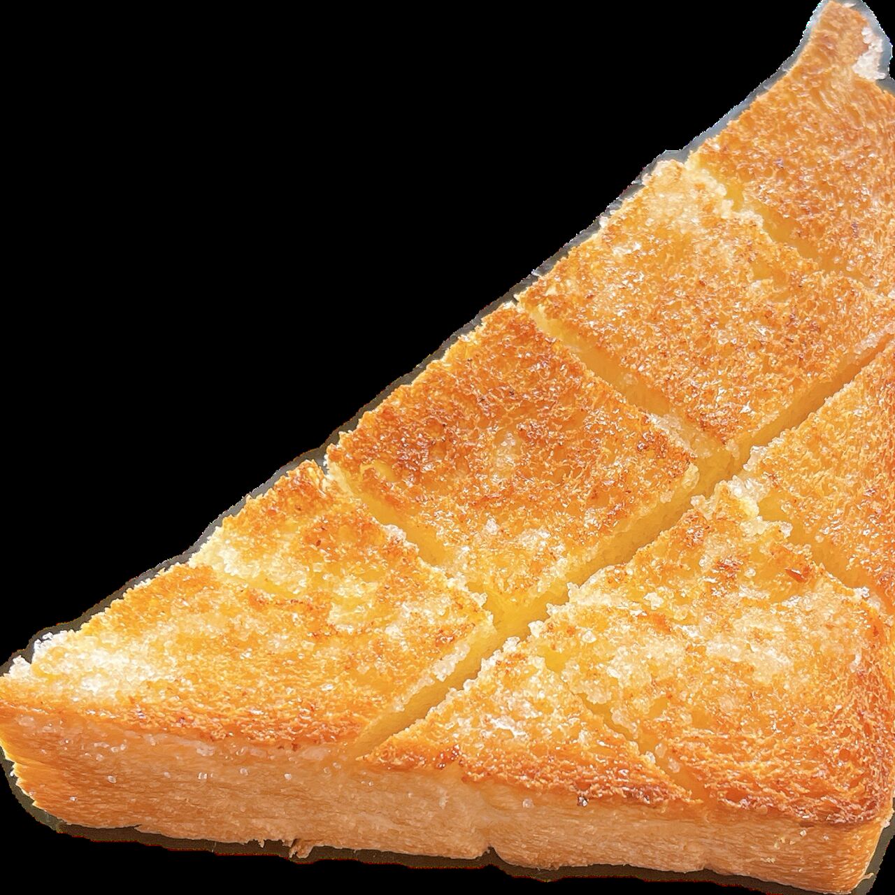 あらぱん人気の生食パンにたっぷりのバターとシュガーで表面はサクサク中はふわふわしたトーストです。