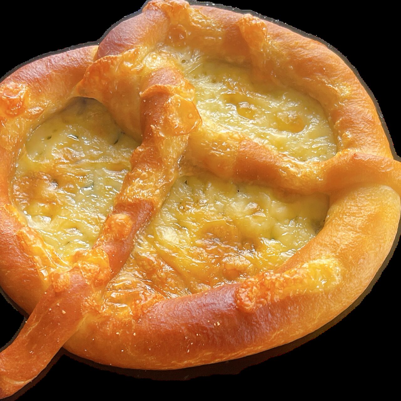 米粉も使用したもっちもちのプレッツェルにたっぷりチーズをトッピング。