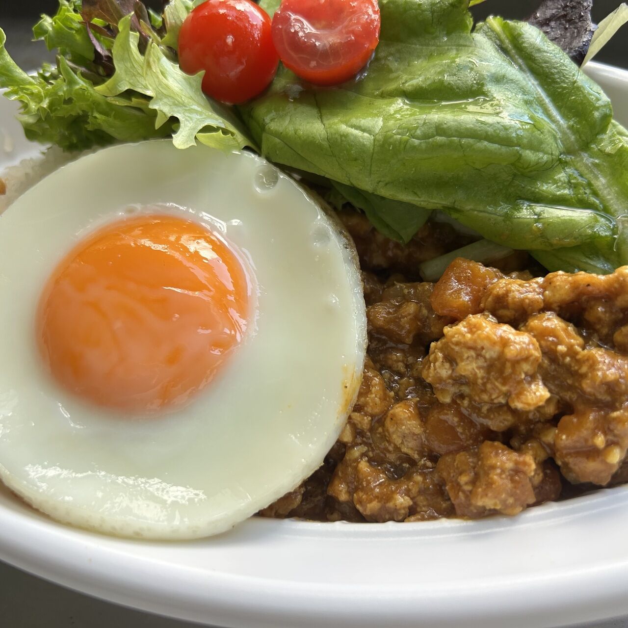 鶏ムネ肉の挽肉と野菜をスパイスとココナッツミルクで仕立てたキーマカレーです。