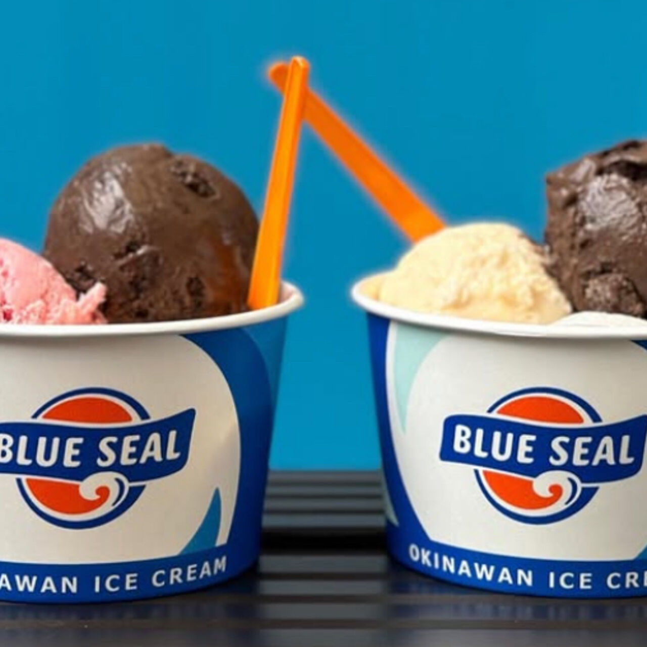 沖縄のブルーシールアイス。4つのフレーバーから選べます。