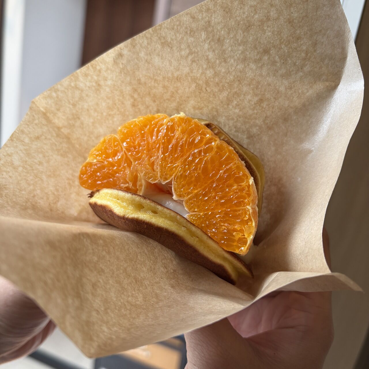 どらやきの皮で柑橘(種類は日替わり)と北海道ミルククリームを挟んでます。あんこは入っていません。