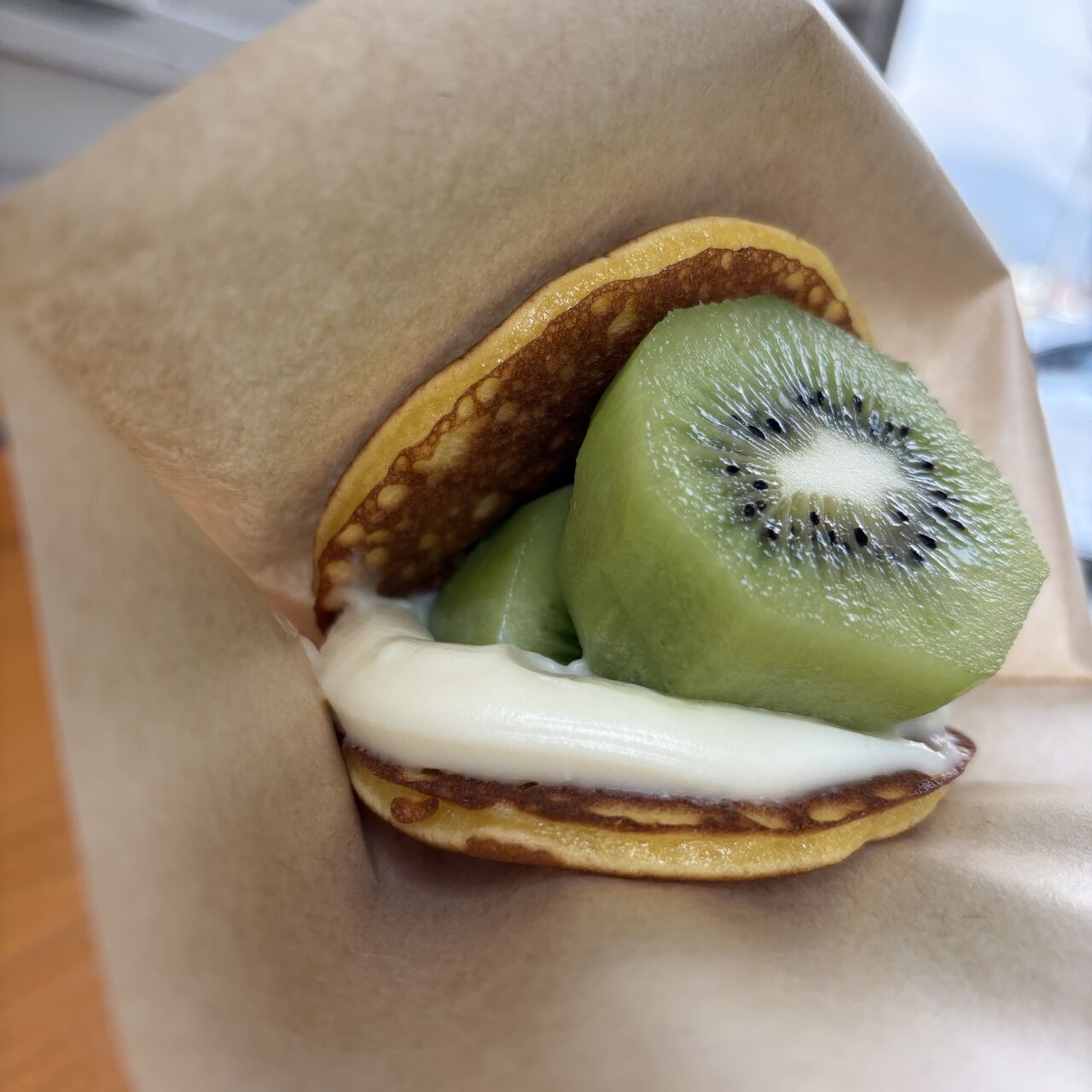 どらやきの皮でキウイと北海道ミルククリームをサンドしています。(あんこは入っていません)