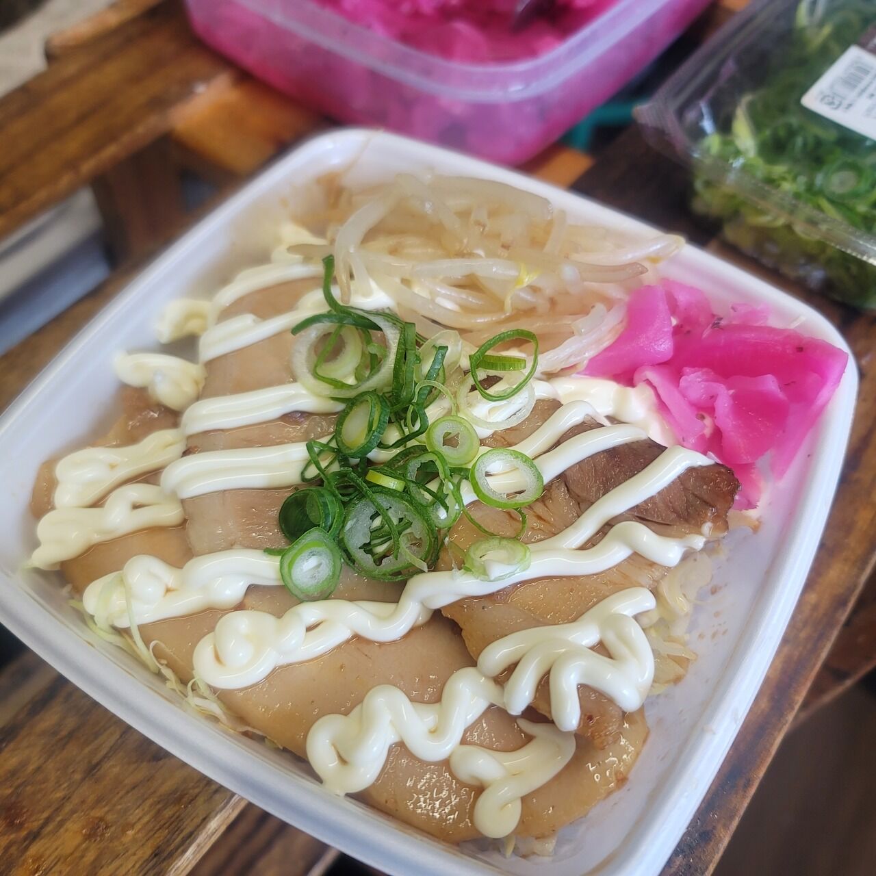 三枚肉の柔らかチャーシューに甘辛ダレとマヨネーズ!