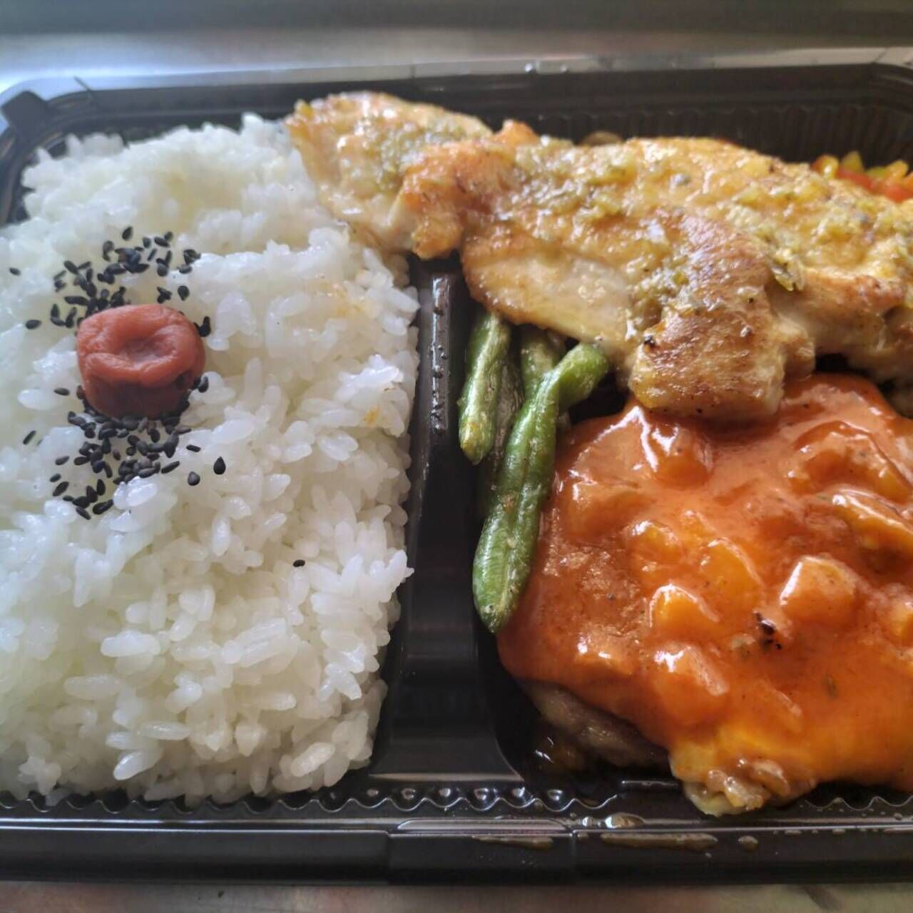 山賊焼きハーフと日々変わる食材のバラエティー弁当