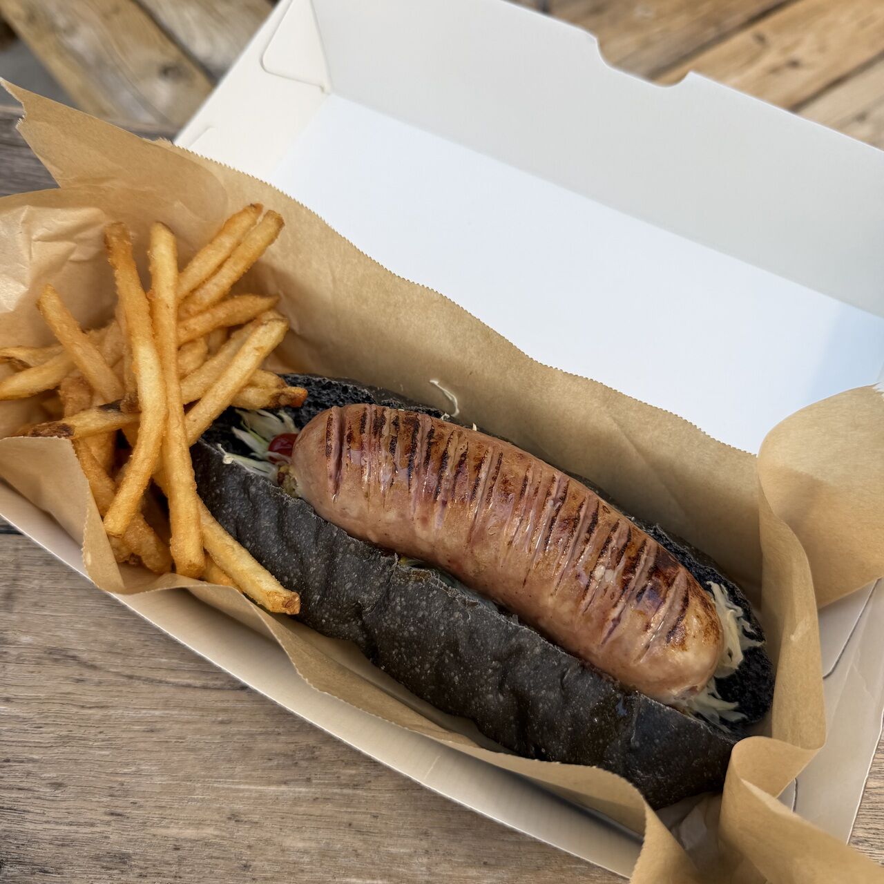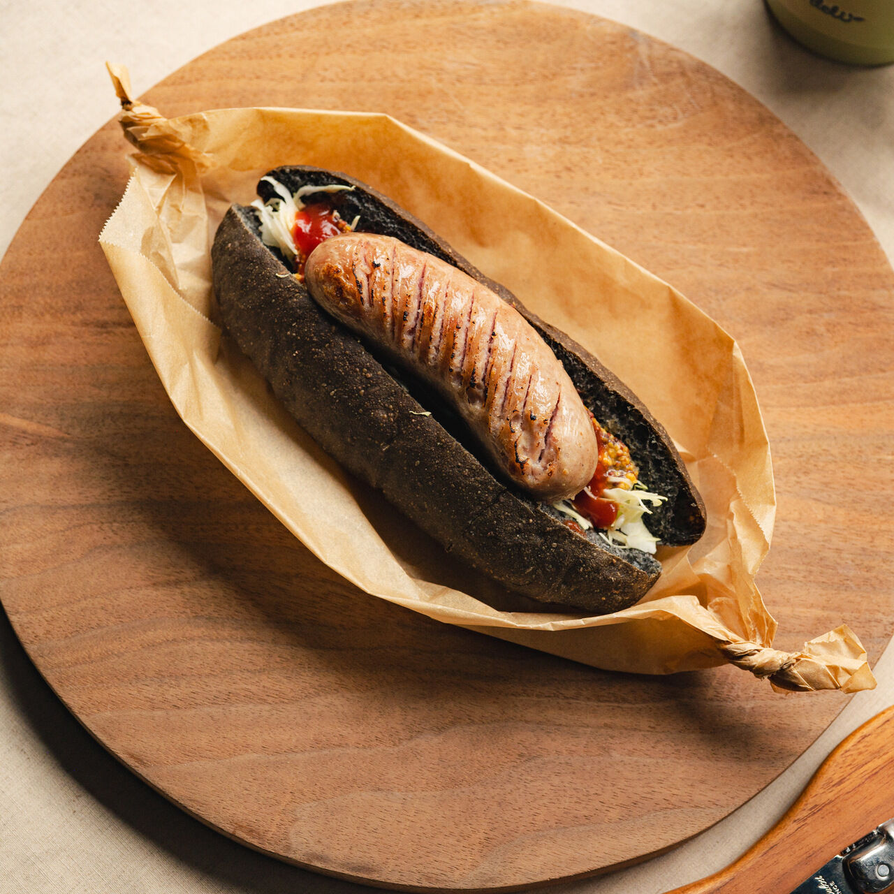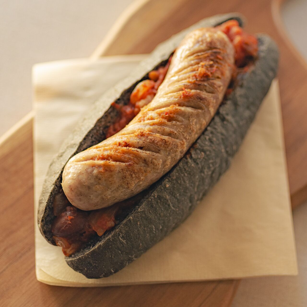デトックス効果や腸内環境を整える麻炭パンのホットドックチリコンカンソース