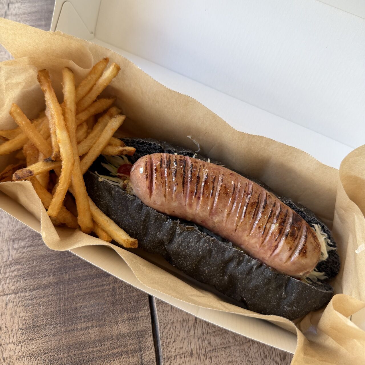 麻炭ドックパンの無添加ホットドックとフライドポテトのセット