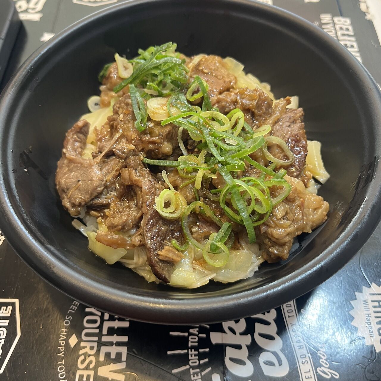 愛知県産知多牛焼肉とたっぷり野菜炒めのボリューム丼。平日ランチ限定