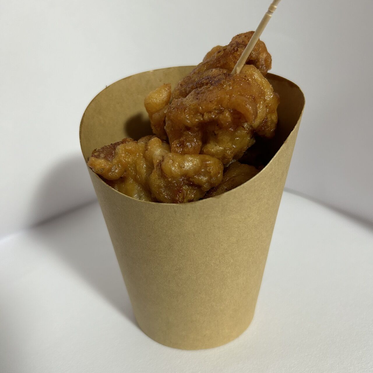 唐揚げに手作りのハニーマスタードソースをかけました。