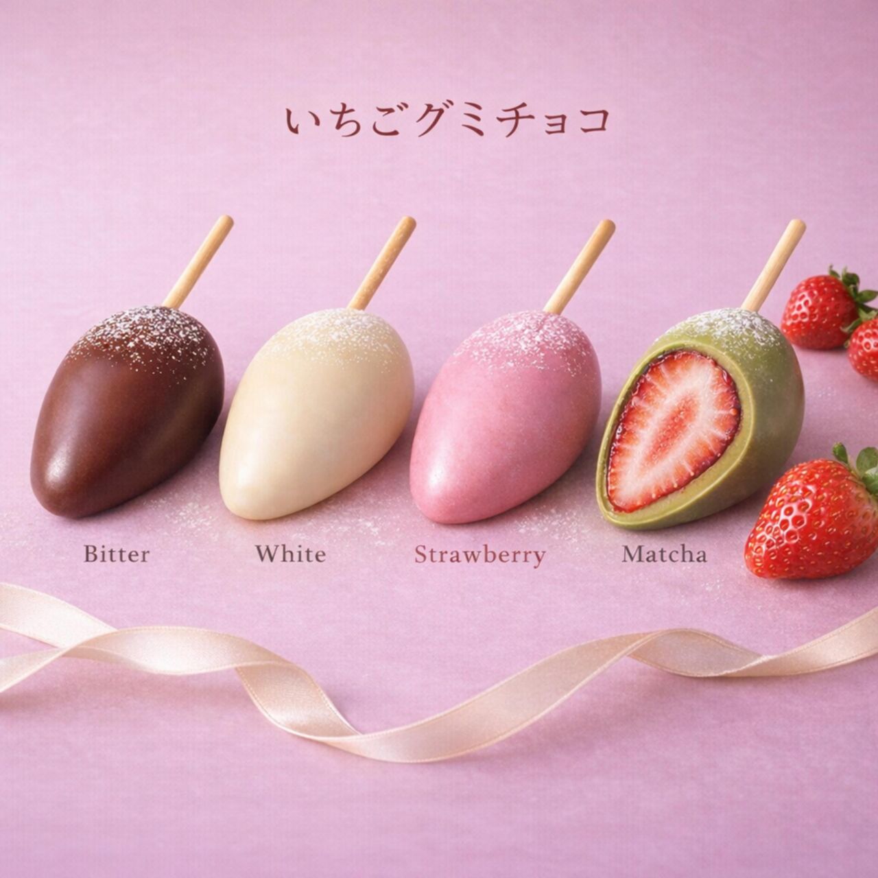 いちごにマスカットグミをコーティングの新感覚スイーツ