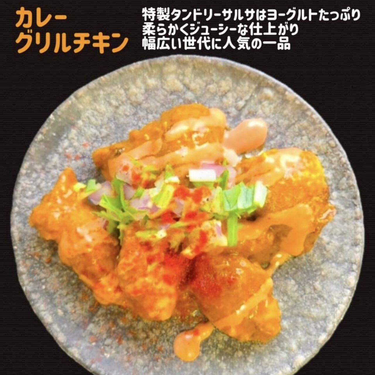 鶏肉をヨーグルトとスパイスに漬け込み柔らかく仕上げた一品 食べごたえのあるグリルチキンにリニューアル