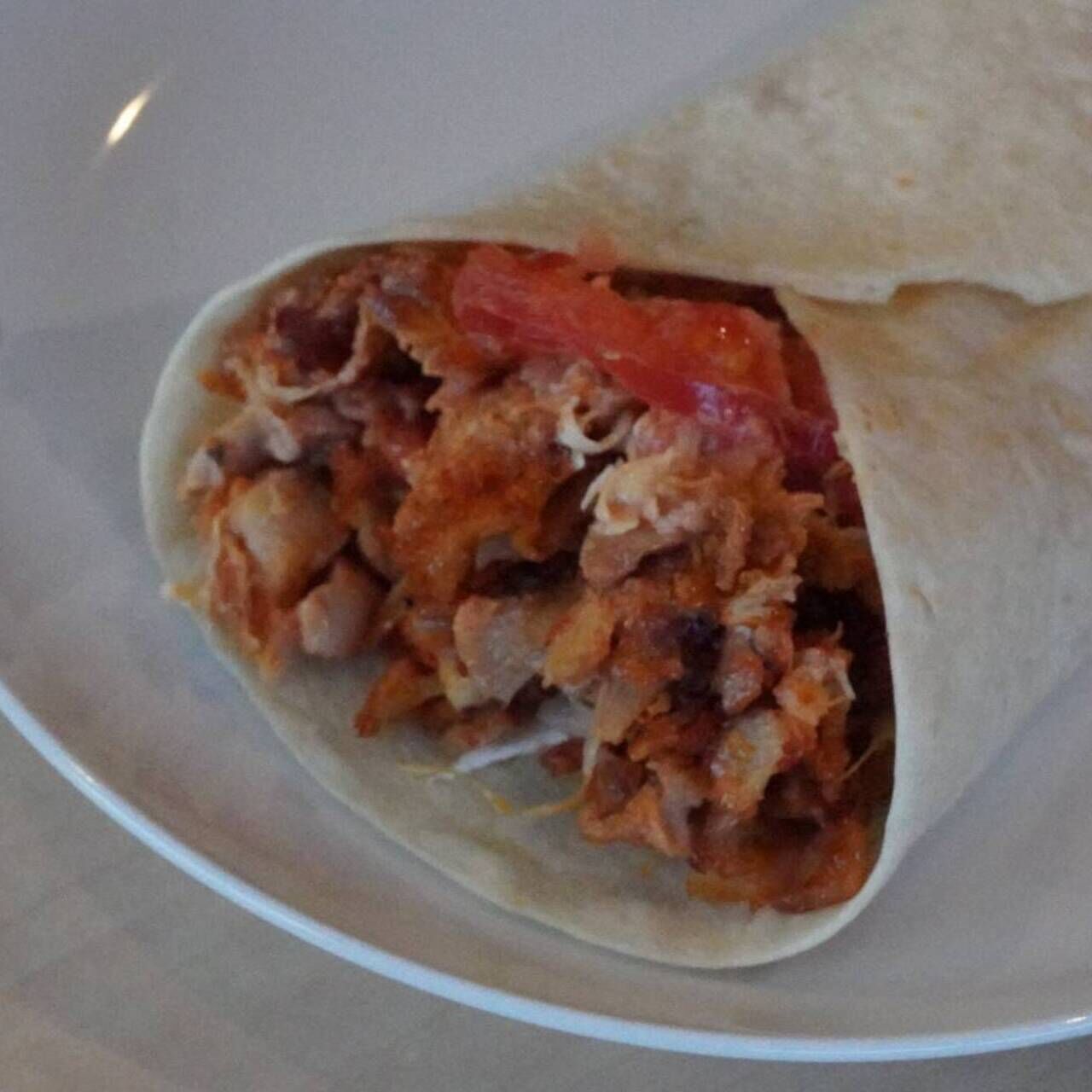 トルティーヤやでお肉、キャベツ、トマト、ソース包んだ片手でも食べやすいケバブラップ
