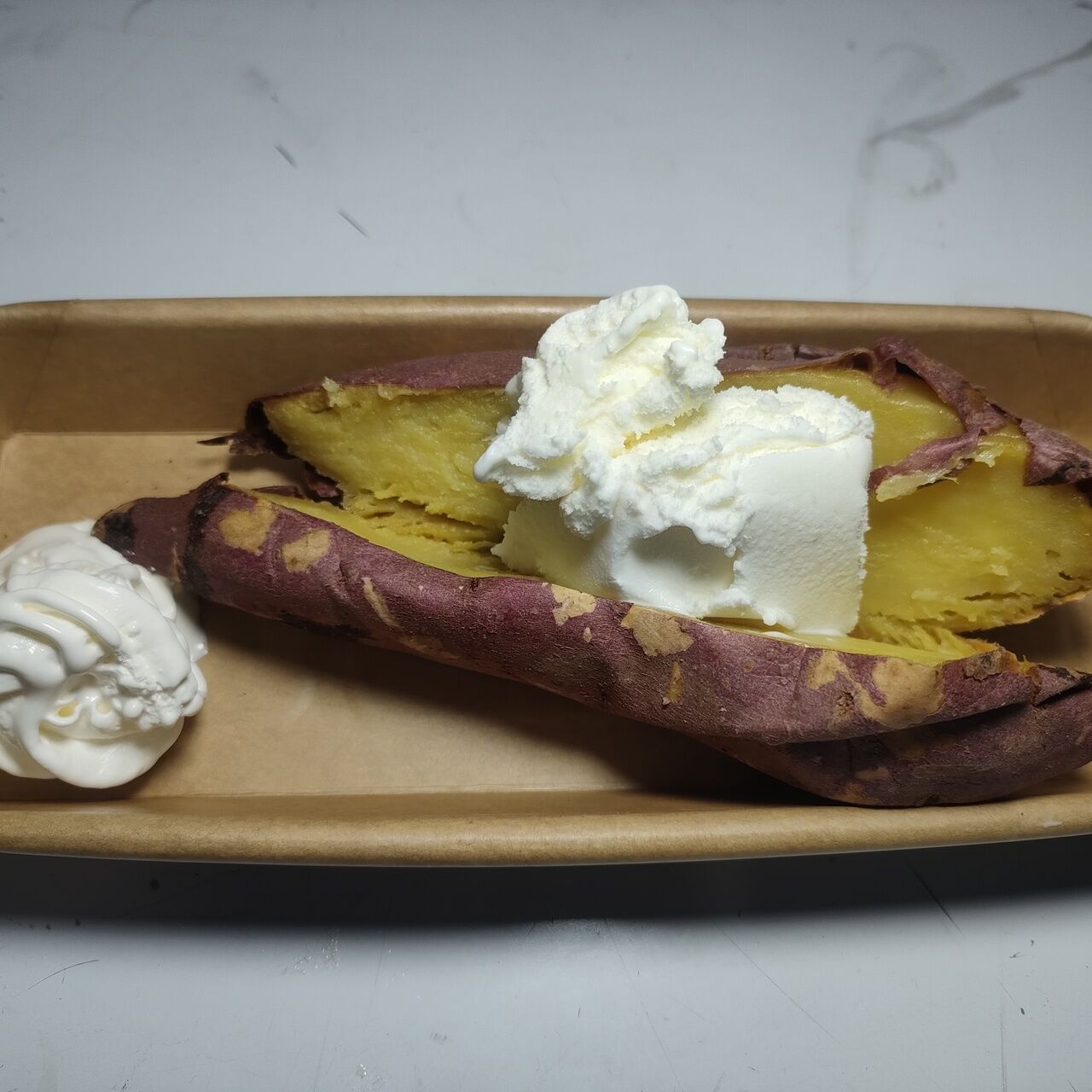 冷たい焼きいもに、アイスクリームと生クリームを一緒にどーぞ!