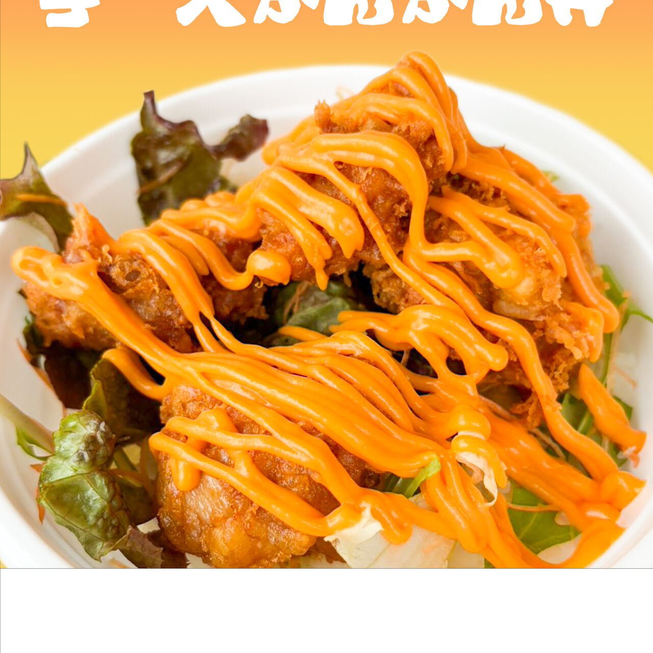秘伝のタレでふんわり揚げたかんかん(とり天)をごはんに。タレが染みて、かんかん×米×温玉が止まらない丼。